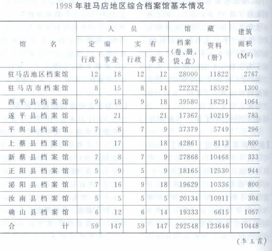 【档案工作概况】1998年,全区档案部门加强档案事业管理和各项基础业务建设,档案工作继续保持了快速、健康发展的良好势头。一是地区档案局制订并下达了全区档案工作年度计划和工作目标实行一级抓一级,定期检查、汇报和总结工作,层层层抓落实,保障了各项工作任务的顺利进行。二是加强档案法制建设,依法管理全区档案事业地。县市档案执法工作领导小组认真履行职能,地区行署和各县市人民政府还发布文件,明确地、县市档案局的档案执法主体资格。全区有42人取得了档案行政执法证书,12人取得了档案执法监督证书。地、县市档案局进一步规范了档案行政执法行为,依法开展了档案工作检查活动。全区档案部门利用纪念国际档案理事会成立50周年和“国际档案周”等活动,邀请领导同志发表电视讲话组织档案工作知识竞赛,在城市主要街道展出宣传版面,利用各种宣传媒体宣传档案工作。地区档案局发放《档案宣传图解》100套、展出版面8块、召开座谈会2次、组织200余人学习,取得了较好成效。三是全区档案学会工作有一定进展。地区学会组织会员撰写学术论文,向省学会推荐10篇,其中3篇被评为2等奖,3篇被评为3等奖。四是档案职改工作正常进行。有21人取得初级专业技术职务任职资格,有8人取得中级专业技术职务任职资格。五是全区档案馆、室的硬件建设取得明显进展。地区档案馆楼加固加层改造工程于4月8日动工,扩建后的建筑面积将达2767平方米,其中新增面积1263平方米,驻马店市新建的档案馆楼于10月竣工投入使用:正阳、新蔡两县档案馆楼加同加层工程即将竣工,遂平、泌阳两县档案馆搬入新址经改造的档案馆楼;其他档案馆和多数档案室的库房设施设备和办公条件也得到不同程度的改善。(李玉霞)