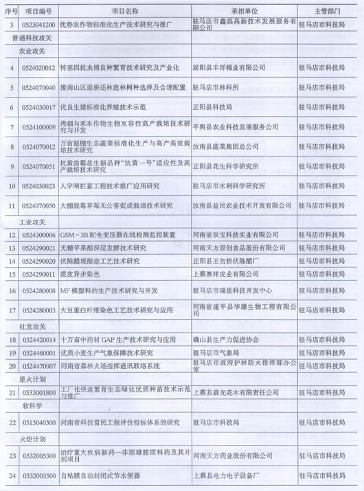 二、积极实施科技富民工程,加速传统农业向现代化农业转变。全市各级农学会组织实施农业科技攻关项目458项、星火计划项目180项,培育出农作物新品种18个,组装推广农业高效栽培技术模式26项。市农学会成员单位市农科所通过实施“农作物新品种选育与栽培技术模式研究”,培育出了“驻麦4号”小麦新品种、驻J18芝麻新品种,通过了省农作物品种委员会审定,分别有8个和5个新品种(系)参加了国家区域试验和国家生产示范,特别是半冬性小麦新品种“驻麦4号”的审定,填补了驻市在大作物育种方面的空白。正阳县农学会通过推广农业标准化技术,使该县成为河南省第一个农业标准化示范县。该学会通过实施“优良生绪规模饲养技术开发”项目,健全了生猪全程质量控制技术标准体系,年出栏生猪160多万头、存栏生猪100多万头,存、出栏两项指标居河南省之首,成为河南省畜牧强县。上蔡县农学会通过实施“花木组培快繁和产业化工程”项目,带动了全县花术生产,全县花木种植面积达10万亩,年销售收入3.2亿元,花木生产已成为该县的支柱产业。平舆县优质白芝麻已被国家列入原产地域保护产品。正阳、新蔡、上蔡、泌阳、西平五个县被批准为国家级粮食生产重点县。全市建立无公害农产品基地29个,认定无公害农产品生产企业8个。平舆县优质白芝麻星火科技专家大院等一批农村科技中介服务机构,被纳入国家星火计划管理。全市累计推广农业科技成果和先进适用技术500多项,产生直接经济效益46亿元;农作物优良品种覆盖率在85%以上,先进适用技术覆盖率80%以上。(徐翠英)