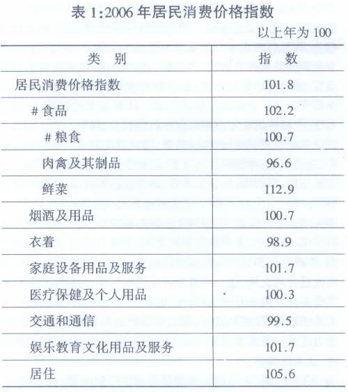 全市居民消费价格总水平比上年上涨1.8%。其中,食品上涨2.2%,烟酒及用品上涨0.7%,衣着下降1.1%,家庭设备用品及维修服务上涨1.7%,医疗及个人用品上涨0.3%,交通和通讯下降0.5%,娱乐教育文化用品及服务上涨1.7%,居住上涨5.6%。商品销售价格上涨l.2%,农业生产资料价格上涨O.8%,工业品出厂价格上涨2.12%。