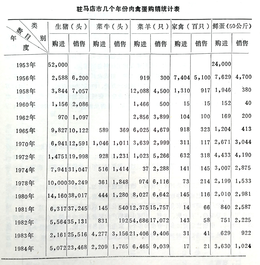 建国前,人民生活水平低,蛋禽肉销售量小。