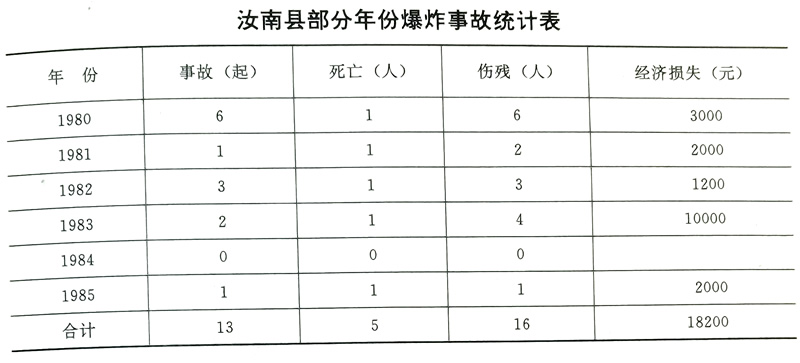 建国后,公安机关开始对县内枪支、弹药和其他危险物品实行统一管理,严禁私藏枪械,凡需购枪者,均须登记造册,经审查批准后由县公安机关发给枪支和持枪证。1981年开始,对因工作需要配带自卫枪、民间猎枪、体育用小口径步枪的,均由公安机关审核、登记、打号、发给使用证。对炸药、雷管、导火索等爆炸物品,储存库须设在空旷地带,室内须设防火、防盗等安全设备,指定专人保管,严格收发、运输、登记制度。1984年起,对使用、购买爆炸物品的单位和个人,经公安机关对其数量、用途及各种安全措施审定后,发给使用证、购买证和运输证,同时严格控制烟花爆竹的私自生产。
