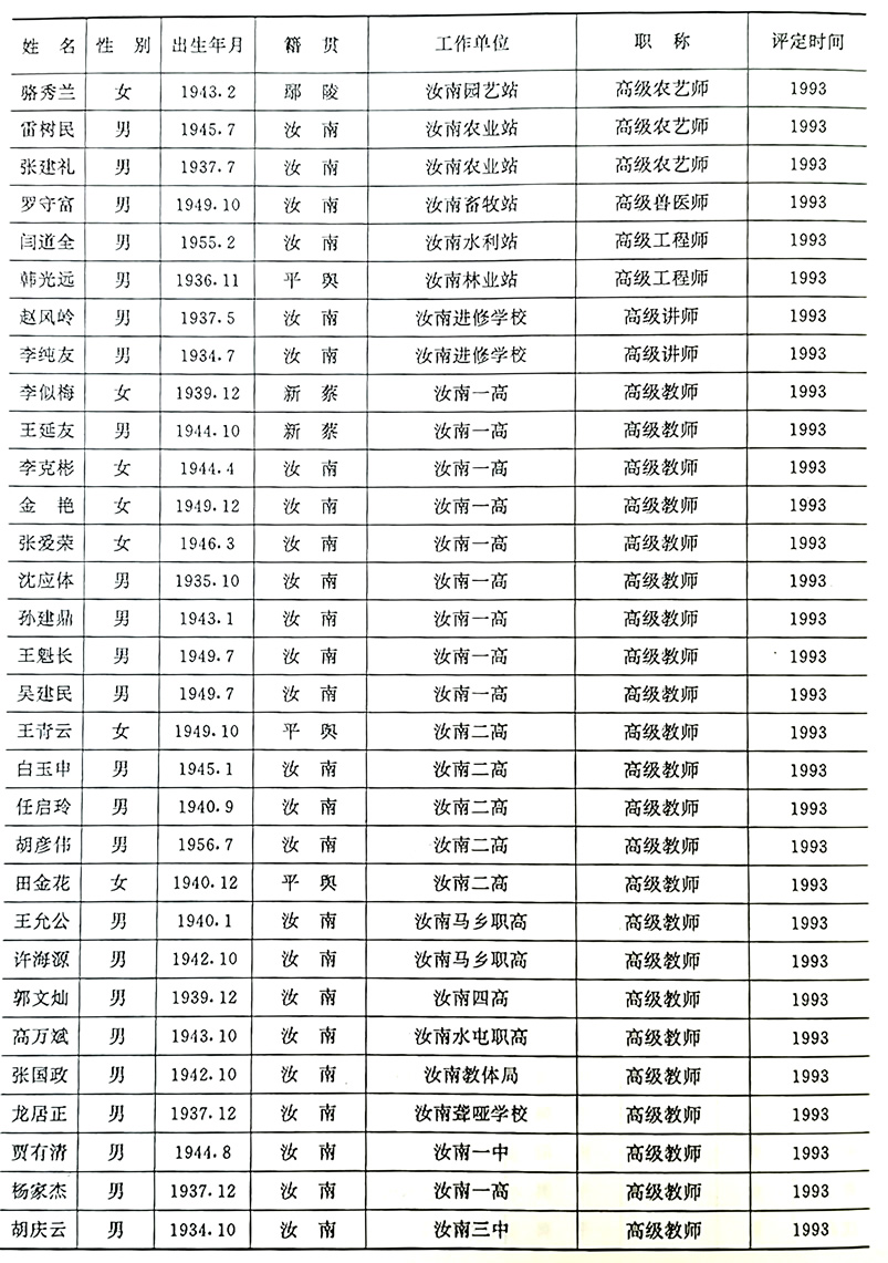 汝南县省级以上的劳动模范、先进生产者、先进工作者:
