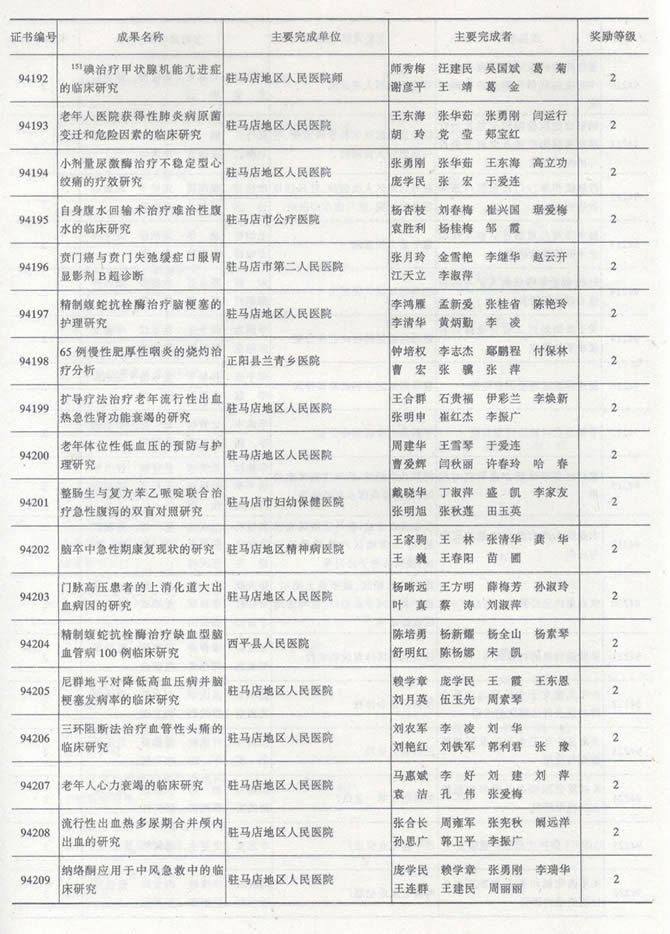 在科技进步奖的评审中,遵照《驻马店地区科学技术进步奖奖励办法》评出了代表区内科技水平的获奖科技成果251项,调动了科技人员从事科学研究和科技开发的积极性。
