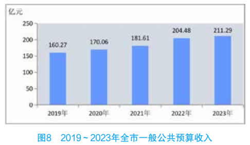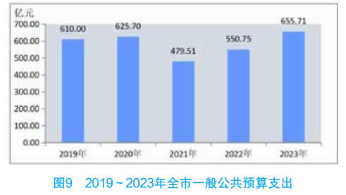 全市财政总收入 315.50 亿元,比上年增长 9.5%。一般公共预算收入 211.29 亿元,增长 3.3%,其中税收收入 131.01亿元,下降 2.5%,占一般公共预算收入比重 62.0%。一般公共预算支出 655.71 亿元,比上年增长 19.1%,其中民生支出467.74 亿元,增长 9.2%,占一般公共预算支出比重 71.3%。