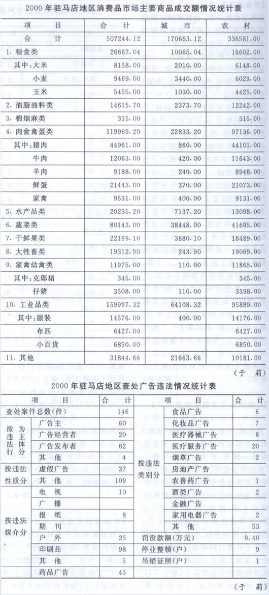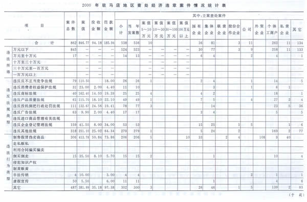 【工商行政管理概况】2000年,全区工商系统在地委、行署和省工商局的正确领导下,以邓小平理论和江总书记“三个代表”重要重要思想为指针,认真贯彻落实党的十五大和十五届五中全会精神及全国、全省工商行政管理工作会议精神,统一思想,坚定信心,知难而进,抓改革、促工作、保稳定,各项工作都取得了可喜的成绩。一是积极稳妥地推进工商体制改革,顺利完成了系统国家公务员考录资格审查、考试录用工作。二是行政执法工作取得了显著成效,开展了“双节”市场整治、“两整顿”和打假联合行动,加强了商标产告和经济合同的监督管理,严厉査处了商标假冒侵权、虚假广告、合同欺诈案件。净化了市场环境。三是以粮食市场管理为重点的市场监管工作取得了新成绩。在全区推行了《粮食购销法人委托证书》制度,规范了粮食购销经营行为。四是企业注册登记工作逐步规范。在严格注册登记程序的同时,对企业档案进行了淸理,堵塞了漏洞。五是加强了对个体私营经济的监管力度,促进了非公有制经济健康发展。六是队伍素质有了明显提高。通过开展一系列教育活动,加强了队伍建设,提高了队伍整体素质。七是为服务地方经济发展做出了新贡献。在连续三年的东西合作经贸洽谈会和正阳花生交易会等大型活动中,全区工商系统强化市场管理,提供优质服务,为驻马店经济发展做出了应有的贡献。(郭留新)