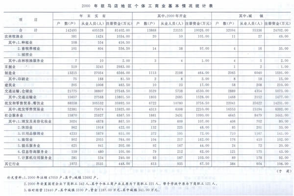 【个体私营经济管理】2000年,全区各级工商行政管理机关,在当地党委、政府的领导下,以党的十五大精神为指针,以“三个有利于”为标准,认真贯彻落实党和国家及省、地有关发展个体私营经济的优惠政策,促进了个体私营经济发展。止年底,全区实有个体工商户142495户,私营企业1186户。同时,通过对个体工商户验照和对私营企业年检,加强了对个体私营经济的监督管理,促进了个体私营经济的健康发展。(郭留新)