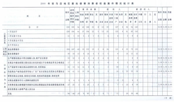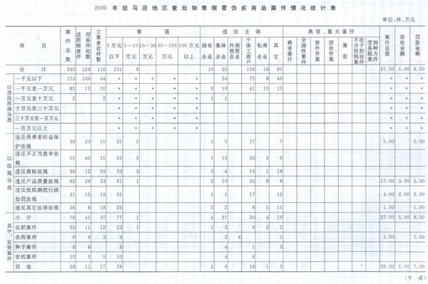 【行政执法与消费者权益保护】2000年,全区工商系统在开展以“反仿冒、反误导”为主题的“双节”市场专项整治的基础上,按照省局的统一部署,在全区集中开展了“整顿市场秩序”专项活动。在市场秩序专项整顿中,全区共査处各类经济违法案件428件,捣毁制售假窝点6个,淸理“三无”企业142家,取缔违法违章经营户348户。同时,按照国务院、省政府、省工商局关于开展打假联合行动的部署,全区工商系统全力以赴,抽调精兵强将组成综合执法队伍,建立了打假工作目标责任制,上下联动,密切配合,形成合力,联合打假工作取得了丰硕成果。截止2000年底,全区工商系统共出动执法人员8287人(次),检査市场168个,商店11388个,查处案件290起,捣毁制假窝点49个,查获假冒伪劣商品总价值384.5万元,罚没款64.2万元,有效地展慑了制假售假违法行为,净化了市场环境。打假工作得到了省工商局的好评。(郭留新)