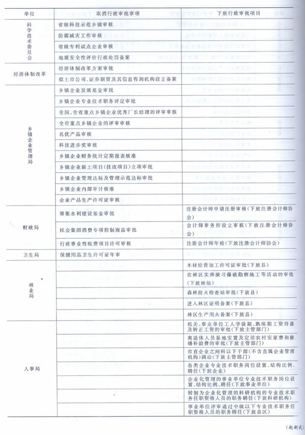 ―、撤消机构:教育体育委员会、土地管理局、地质矿产局、国有资产管理局、经济体制改革委员会、农业工作领导小组及其办公室、扶贫开发领导小组及其办公室、黄淮海平原农业综合开发领导小组及其办公室、化学工业局、建材局、机械电子工业局、轻工纺织局、商业贸易局、招商局。