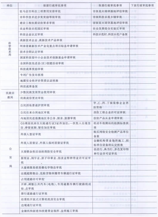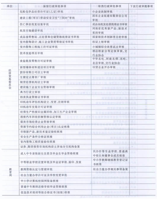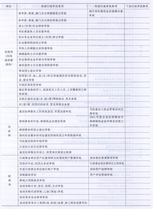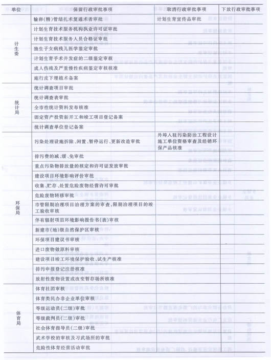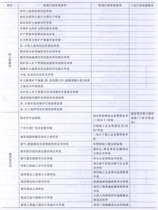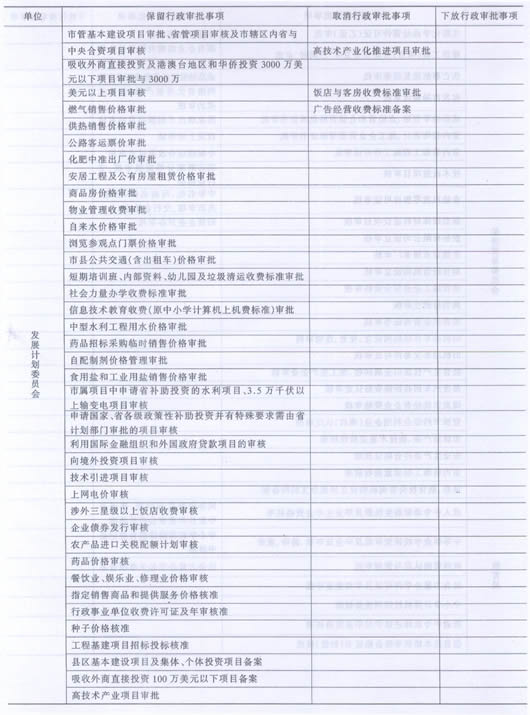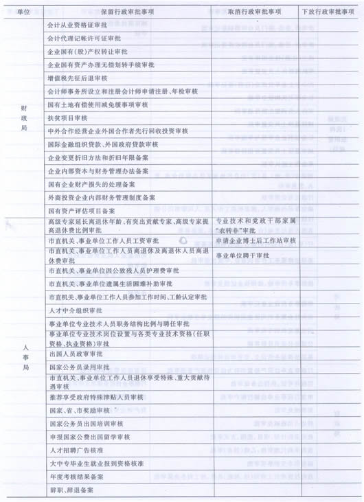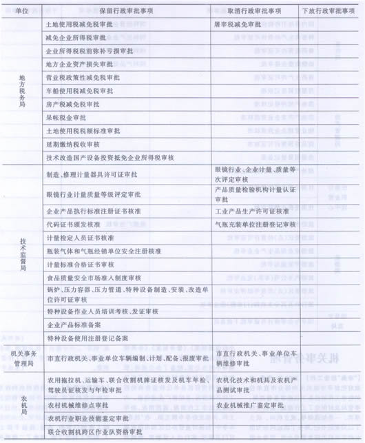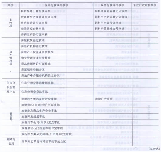 【行政审批制度改革】为贯彻落实《河南省人民政府关于深化行政审批制度改革的通知》精神,自5月下旬以来,全市开展了进一步深化行政审批制度改革,取得了明显成效。据统计,市政府各工作部门、具有行政审批职能的事业单位、部分省垂直管理机构共52个单位上报行政审批事项911项。改革后,保留579项,减少332项(其中不列入87项,取消133项,下放4项,合并减少108项),占36.4%。在2001年清理的基础上,进一步减少了行政审批事项。(赵新武)