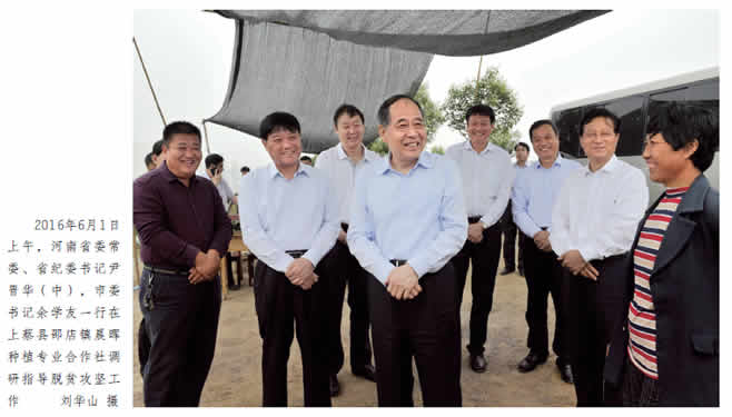 15 日,省政协副主席靳克文带领调研组,到驻马店市开展“利用国家扶贫优惠政策,发展贫困少数民族聚居地区特色优势产业”专题调研。