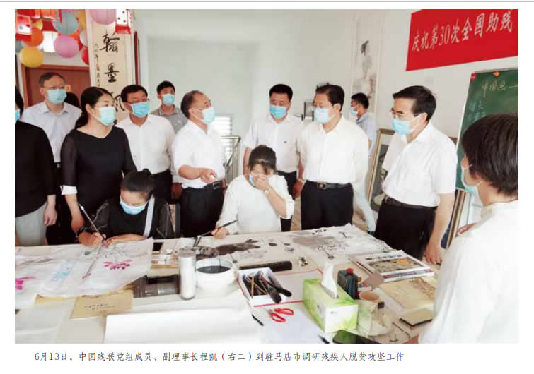 【概况】驻马店市残联改革方案于 2019年 12月 19日出台。全市 9县 2区残联改革方案全部出台。与市民政局联合出台《关于加强和改进村(社区)残疾人协会工作的实施意见》,全面落实村(社区)残疾人协会建设和专职委员选聘工作,调动基层残联干部工作积极性,受到中国残联领导批示和肯定,在全省通报。建立巡回下乡办证、服务上门长效机制,办理残疾人证 29万个。其中,建档立卡贫困残疾人在申领自愿原则下应办尽办,办证率在全省处于领先位次。全市 9.03万建档立卡贫困残疾人全部脱贫。2020年市残联受到市政府通报表扬 11次。5月 15日,中国残联主席张海迪在联合国亚太经社会“新冠疫情背景下残疾人的保护与赋能”视频会议上,专门介绍了驻马店疫情防控经验;市残联机关党支部受到省委组织部首批表彰,党组书记、理事长张银良作为表现突出的共产党员被省委组织部通报表扬;10月 14日,市残联理事长张银良在 2020年全国扶贫日系列论坛——残疾人脱贫攻坚论坛上作典型发言,基层党组织助残扶贫实践和重度残疾人集中托养工作实践被写入《破解因残致贫问题的中国方案》。(吕银霞)