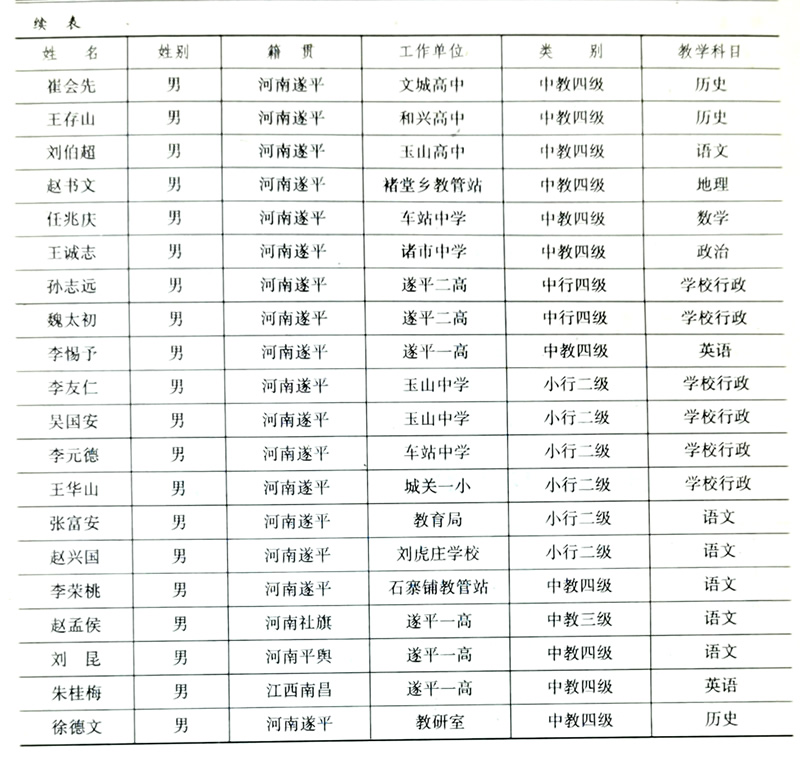 三、遂平县革命烈士英名录