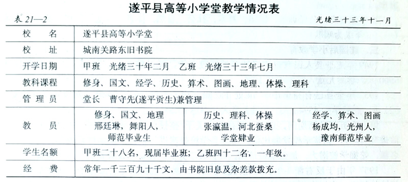 宣统元年正月,在县城南关路东吴房书院处又设立官立第二高等小学堂。有职员2人,教员2人,学生44人,校长魏绍离。每年经费银666两。