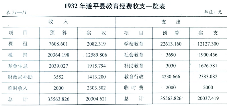 民国时期遂平县教育经费分为县教育经费和区(1941年以后称乡、镇)教育经费。县教育经费 民国元年县署将学校学田1200余亩收归教育用款,又添收屠行捐200多串,契税捐每纸1串,统经公款局代收,1917年改由劝学所直接收取。1938年后则完全归教育款产经理处所经理。是时,教育款总数年收支也仅有两万余串。1929年随粮征收教育附加,每亩6角;契税附加,每纸3分。县财务局每年津贴教育款两千元。1934年又拟随粮征收地亩捐充作教育款。