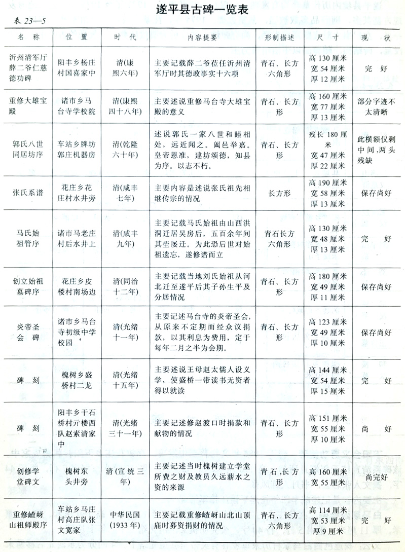 1942年(民国31年),遂平县文献委员会成立。负责收集文献资料和古旧图书。民众教育馆内设博物标本室,有明代成化大铁佛像一,大石像一,青石真武像二,五代硫砖二,元代文石碑及明代成化钟各一,因战乱此物去向不明。