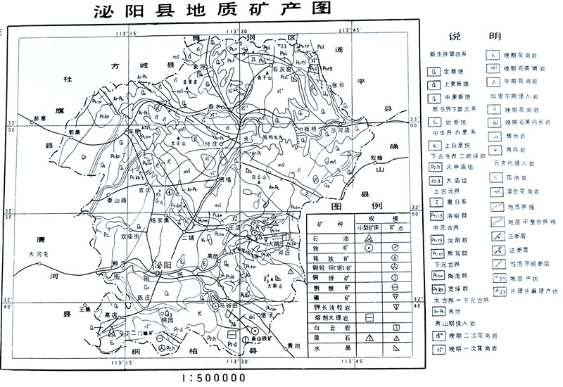 泌阳县位于两个一级构造单元-中朝淮地台和秦岭褶皱系的衔接部位。地质情况复杂,矿产种类较多。