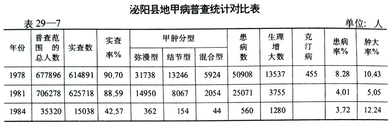 地方性甲状腺肿与克汀病防治1958年国家开始对该病患者免费供药治疗,并帮助发病率高的村庄改良饮用水源。1967年在马谷田公社(高发区)搞试点,实行食盐加碘和服用碘糖片治疗。1974年将此经验推广到15个公社,普查了510675人,查出患者78966人,发病率占15.46%。其中克汀病184例,占患病人数的0.23%。马谷田公社中和大队发病率最高:调查1264人,查出患者392人,发病率为31.01%。该大队学校,共有学生119人,患病率为84.87%。1977年县、社两级分别成立有一位主要领导负责的防治地方病领导机构,制定防治地甲病规划,卫生部门主抓,有关部门配合,实行食盐加碘进行防治。对碘盐加工、运输、销售供应,由县、社、队三级管理,禁止非碘盐流入。1981年普查结果与1978年相比,患病率下降50.82%。高发社、队没有新发克汀病。原有克汀病人得到康复。1984年经省、地联合检查验收,达到了国家规定的基本控制的防治标准。