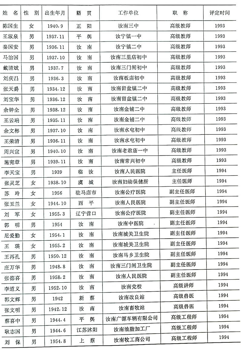 乔明泰,汝南县水屯乡,全国粮食系统先进工作者。