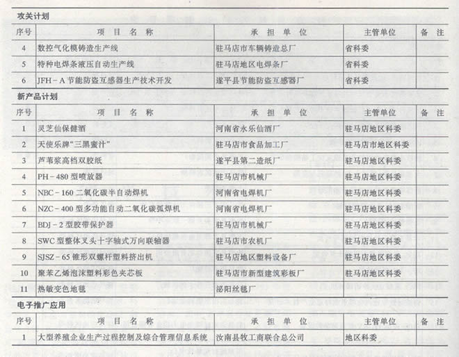 1995年整理汇编了《100项科技成果重点推广项目》,在科技大会期间下发,加速了科技成果向现实生产力的转化,为实施富民工程,加快脱贫致富奔小康步伐,提供了有力的技术支撑。(商东明)