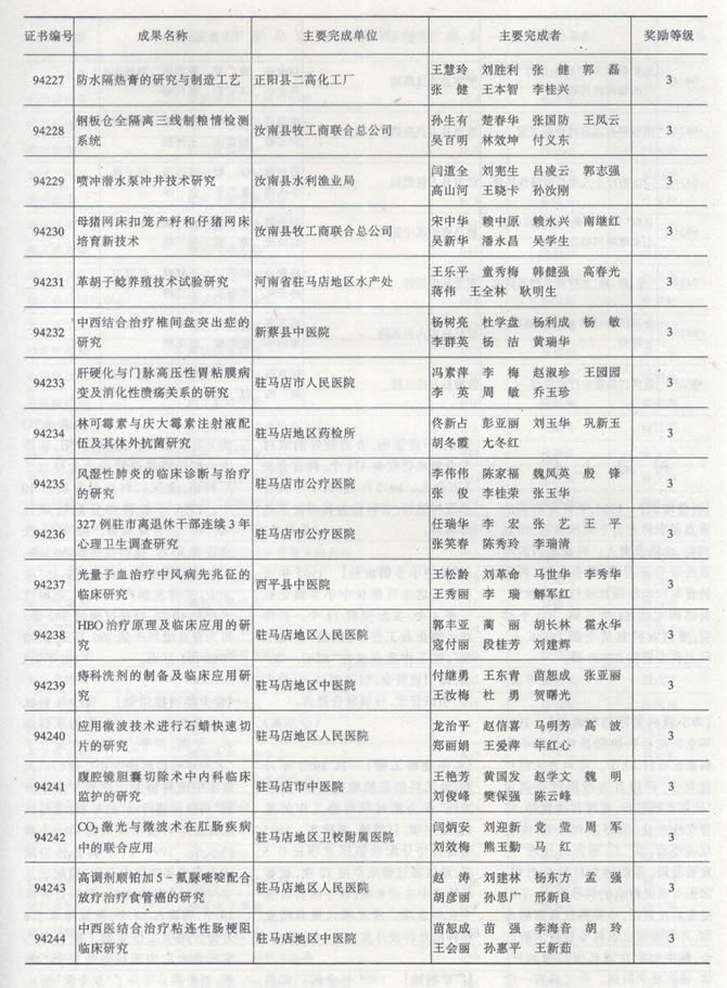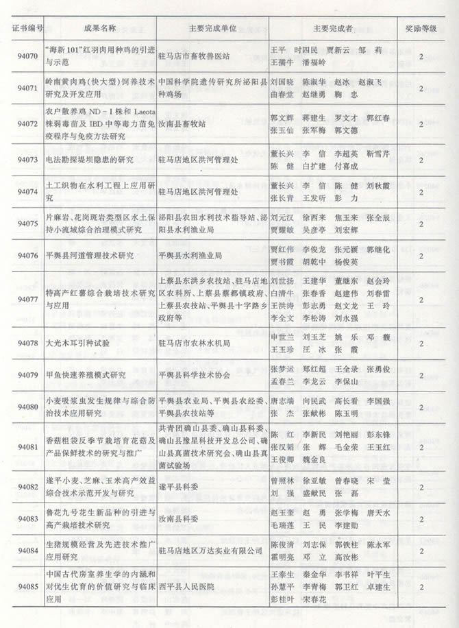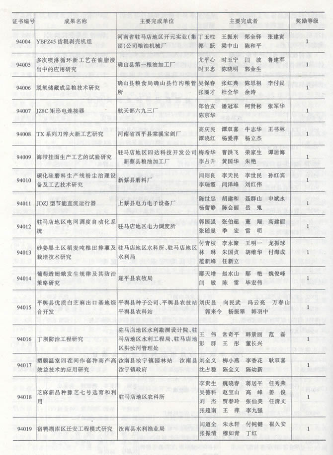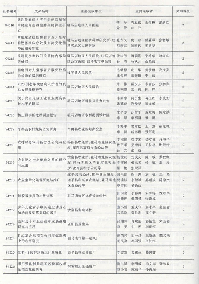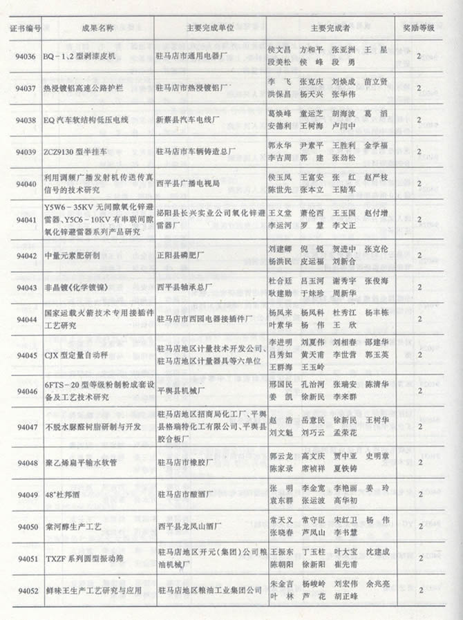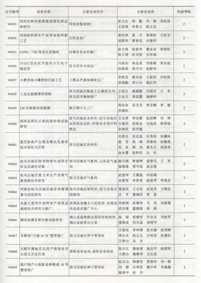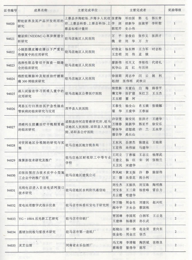 在科技进步奖的评审中,遵照《驻马店地区科学技术进步奖奖励办法》评出了代表区内科技水平的获奖科技成果251项,调动了科技人员从事科学研究和科技开发的积极性。