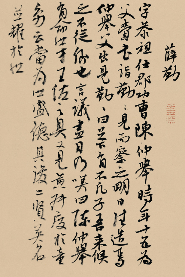 薛勤,字恭祖,仕郡功曹。陈仲举时年十五,为父